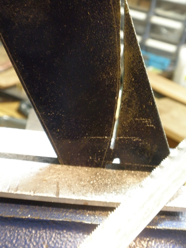 斜めに切り始めるところは、さすがに切り初めの取っ掛かりが難しいので、ヤスリで切込みを入れてから切り始めます。